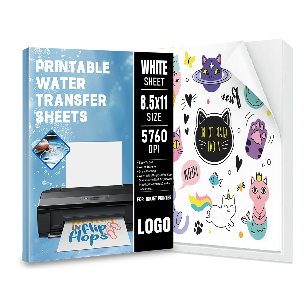 يظل الغرض من ورق ملصقات شرائح الماء القابل للطباعة بنفث الحبر هو مواصفته التصميمية للاستخدام في طابعات نفث الحبر لإنتاج ملصقات مخصصة للتطبيقات السطحية. يتيح المنتج للمستخدمين إنشاء تصاميم ملونة مفصلة باستخدام طابعتهم قبل تطبيق الصور على مواد ناعمة مختلفة تشمل السيراميك والزجاج والبلاستيك والخشب والمعدن والأسطح الأخرى.