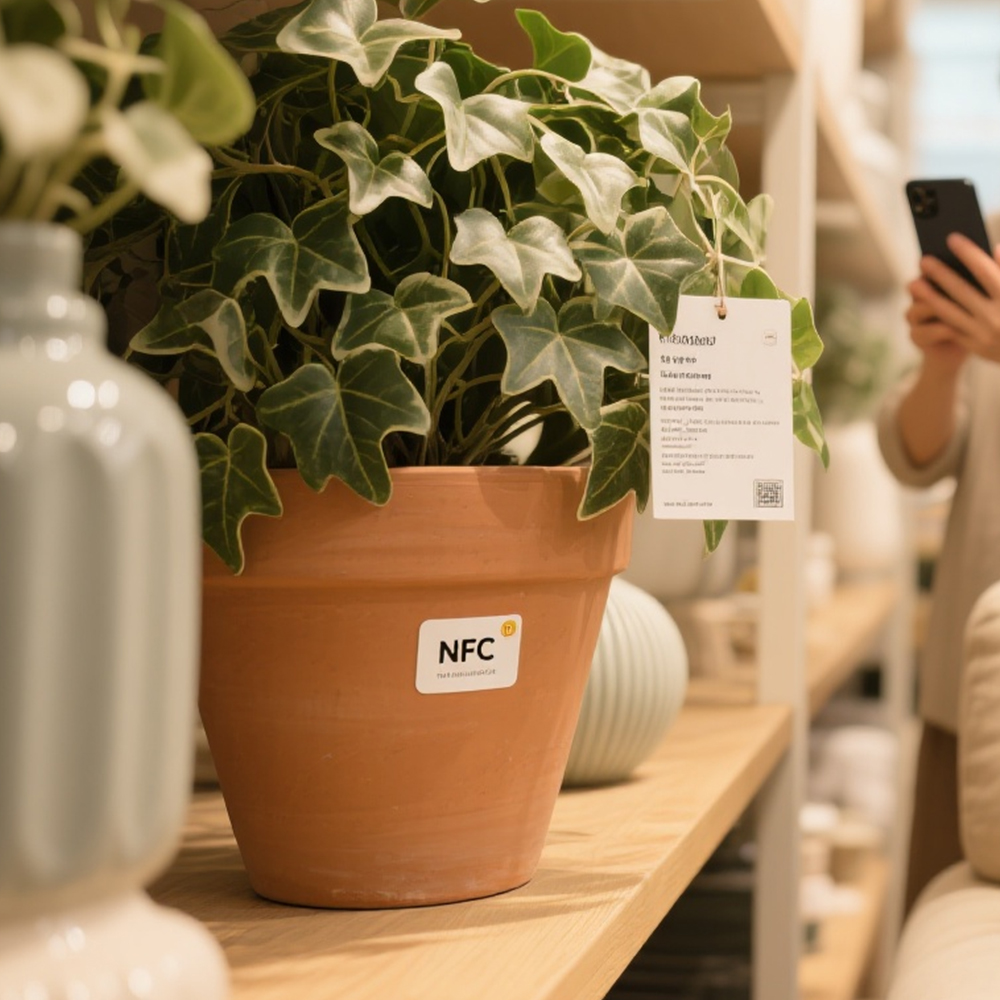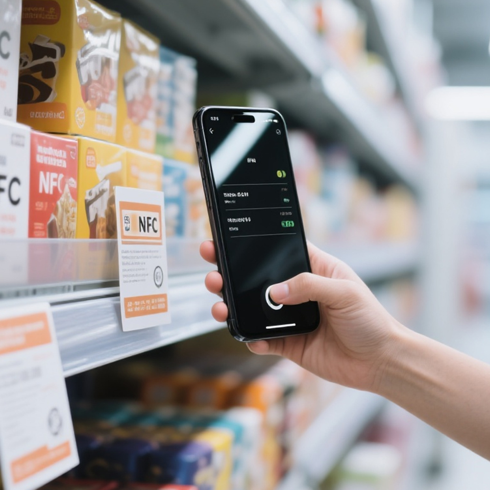 ملصق NFC يتيح الاتصال اللاسلكي بين العناصر المادية والبيانات الرقمية. مع اتصال قريب المدمج (NFC) الرقائق, يمكن لكل تسمية أن تفعل إجراءات محددة مسبقا مثل تشغيل عناوين URL, استرجاع معلومات الاتصال, أو الوصول إلى المحتوى عبر الهواتف الذكية. شكلها المدمج وتصميمه اللاصق يجعلانه قابلا للتطبيق على الأسطح عبر العبوات, الإلكترونيات, شارات الفعاليات, وعناصر الجرد.