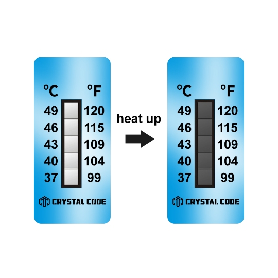 تستخدم ملصقات قياس درجة الحرارة على نطاق واسع في السكك الحديدية, الطاقة الكهربائية, مصانع الصلب والعديد من المجالات الأخرى, مثل: مراقبة درجة حرارة صناديق محور العجلات في أنواع مختلفة من عربات الركاب المكيفة في السكك الحديدية, مراقبة درجة حرارة قضبان التوصيل والمعدات الكهربائية في خزائن مفاتيح الطاقة, وهكذا. ملصقات قياس درجة الحرارة من CrystalCode تتمتع أيضا بنعومة جيدة وقوة التصاق قوي.